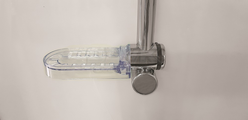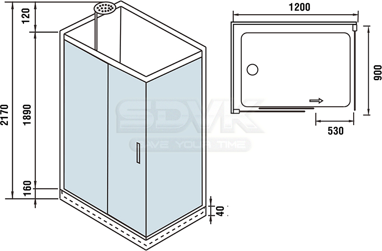 Конструкция кабины включает одну раздвижную створку из прозрачного стекла толщиной 5 мм. Фасадное стекло не имеет тонировки, что визуально сохраняет легкость конструкции и не скрадывает площадь помещения. Направляющий профиль выполнен из прочного алюминия с хромированным покрытием, которое устойчиво к коррозии и придает изделию современный вид.